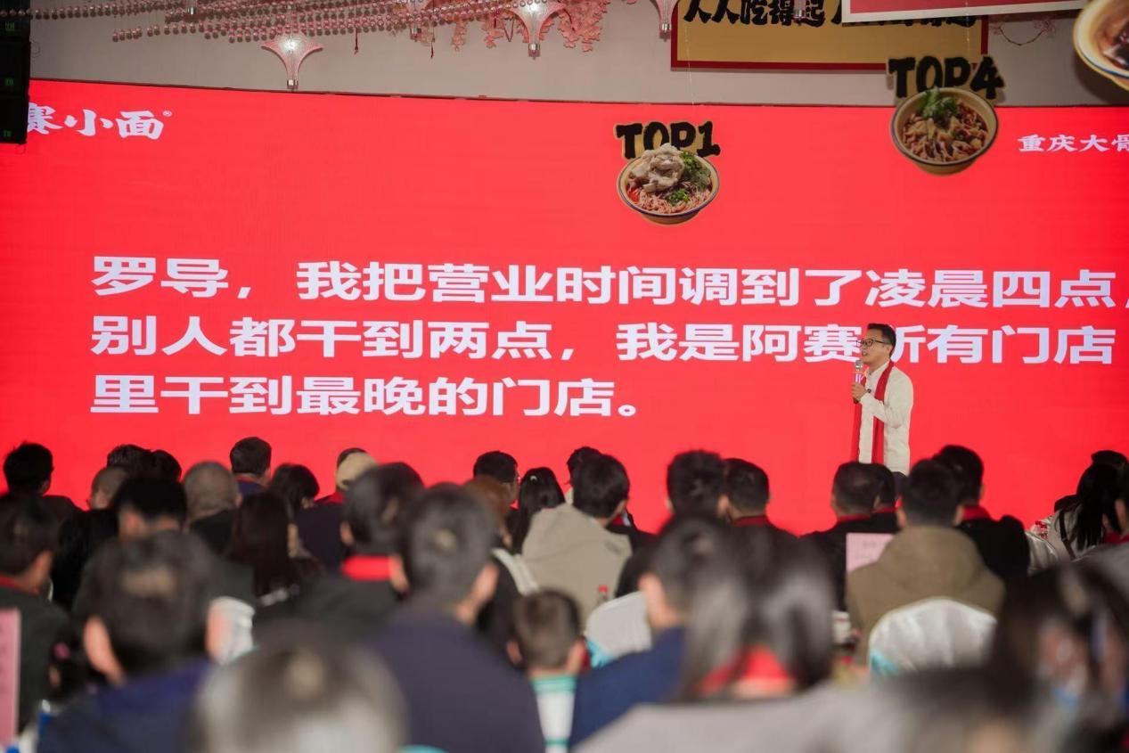阿賽小面不僅在開店速度上實現逆勢上漲,在開店質量上也取得了不錯的成效,100家門店平均租售比9.46%,在餐飲連鎖行業(yè)中處于前列。三孩寶爸小寧仔帶動家族開店、單親媽媽玲姐日銷8000+、小雄母子攜手創(chuàng)業(yè)、深圳坤總連開10店等案例,生動印證了品牌“幫助一萬個家庭勤勞致富”的使命。會上發(fā)布的2026年專攻廣東省內小縣城小縣鎮(zhèn),空白市場“閃電戰(zhàn)”、重點市場蜂巢戰(zhàn)”拓展策略,以及“2050產品計劃”“加盟商評級機制”等總部運營方向,更以數據化手段保障單店盈利與品牌一致性,為千店藍圖筑牢基礎。