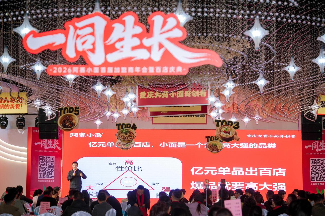 2026年初,餐飲行業(yè)仍處于“需求疲軟、成本高企”的調整期,據《2025年中國餐飲產業(yè)生態(tài)白皮書》顯示,2024年餐飲收入增速從2023年的20.4%驟降至5.3%,人均消費均價同比下降6.6%,超1680萬家餐飲企業(yè)陷入“供過于求”的競爭困境。在此背景下,阿賽小面“一同生長”首屆加盟商年會暨百店慶典的舉辦,不僅標志著品牌僅用10個月就實現從0到100家門店的突破,更以“人人吃得起,人人開得起”的理念,為行業(yè)提供了一條“平價優(yōu)質、共生共贏”的破局路徑。