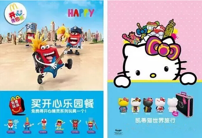 就在去年的六一兒童節(jié)期間,麥當勞推出了新玩具,但這次不同往常,并非單推一款。若顧客購買了開心樂園套餐,則可以免費得到一個“Happy”玩具;若顧客任意消費再加25元則可獲得一款可愛的“Hello Kitty”玩具,甚至加138元可獲一整套。