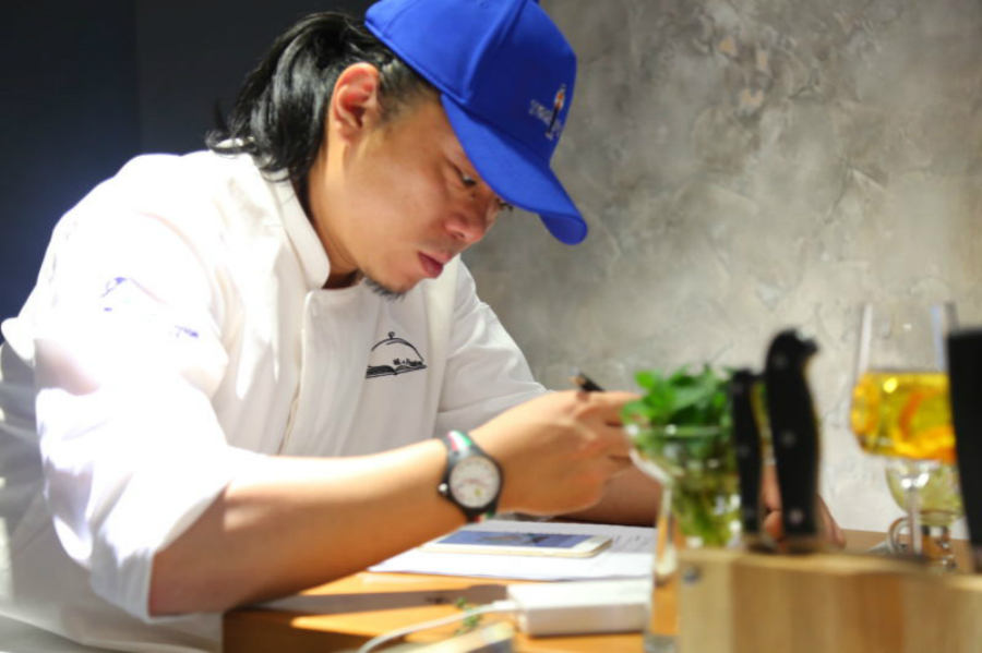 ▲ 潛心于菜品研究的呂鑫,不放過任何一個(gè)學(xué)習(xí)的機(jī)會(huì)