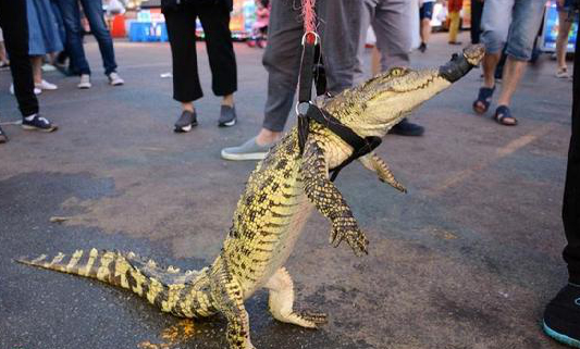 2017年5月21日,沈陽(yáng)街頭亮相鱷魚(yú)肉炸串,一攤主制作鱷魚(yú)肉炸串進(jìn)行販?zhǔn)?,現(xiàn)場(chǎng)